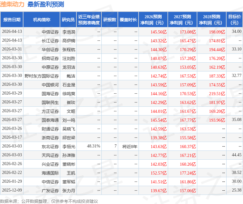 证券之星消息,2026年4月23日潍柴动力(000338)发布公告称公司于2026年4月21日接受机构调研,百年保险资管胡戈游 戴斌 黄伟轩 李翘楚 别依田、开源证券赵悦媛参与。