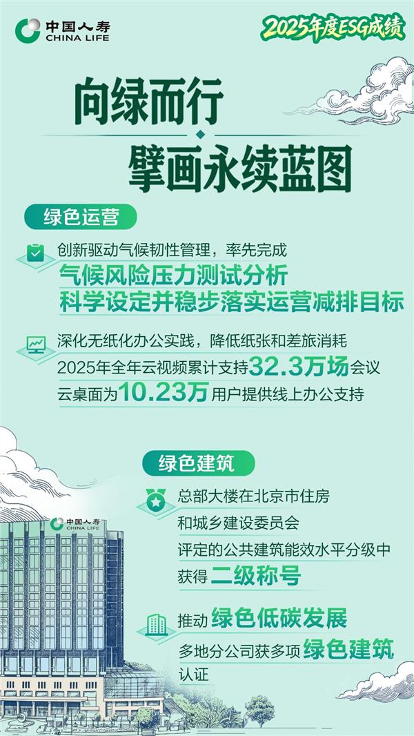 当前,ESG不仅是全球企业可持续发展的核心标尺,更是我国推进“双碳”目标、构建多层次社会保障体系,以及防范金融风险的国家战略要求。在金融监管政策持续强化ESG披露、国务院“双碳”行动方案推动绿色金融扩容的背景下,寿险行业头雁——中国人寿保险股份有限公司(以下简称“中国人寿”,股票代码:601628.SH,2628.HK)以ESG为锚,将国家战略融入企业基因,以行业领先的ESG 评级与超7000亿保费规模,彰显金融央企服务中国式现代化的责任担当。