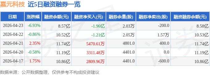 证券之星消息,截至2026年4月23日收盘,嘉元科技(688388)报收于47.0元,下跌6.93%,换手率8.95%,成交量40.77万手,成交额19.42亿元。