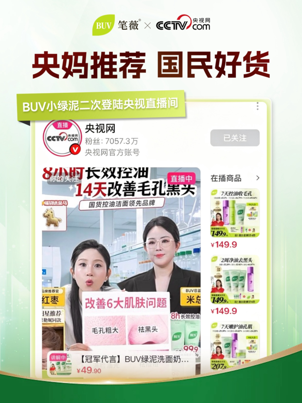 BUV则扎根油皮专研赛道,明星单品“小绿泥洗面奶”连续2年拿下沙利文认证的“国货控油洁面全国销量第一”,自2022年发售以来全网累计销量已超3000万支。品牌独创的“3:4:3清爽控油模型”——3重天然泥、4重控油植萃及3重清洁表活的科学配比,平衡了清洁力与温和肤感。经SGS三大人体功效实证,BUV小绿泥可实现8小时持续控油,有效改善毛孔堵塞与水油失衡等问题。