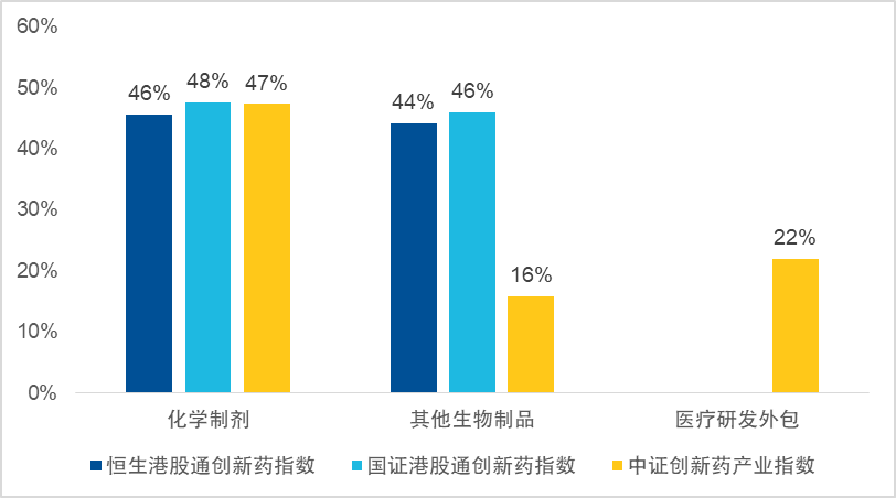 行业分布:中证创新药相比港股通指数多覆盖了CXO