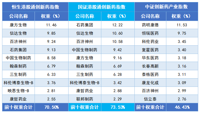 主要成份股:两条港股通创新药指数高重叠