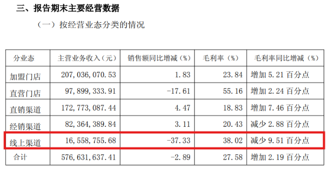 当加盟门店端增长乏力,公司将增长重心大幅转向线上、直销以及经销渠道。