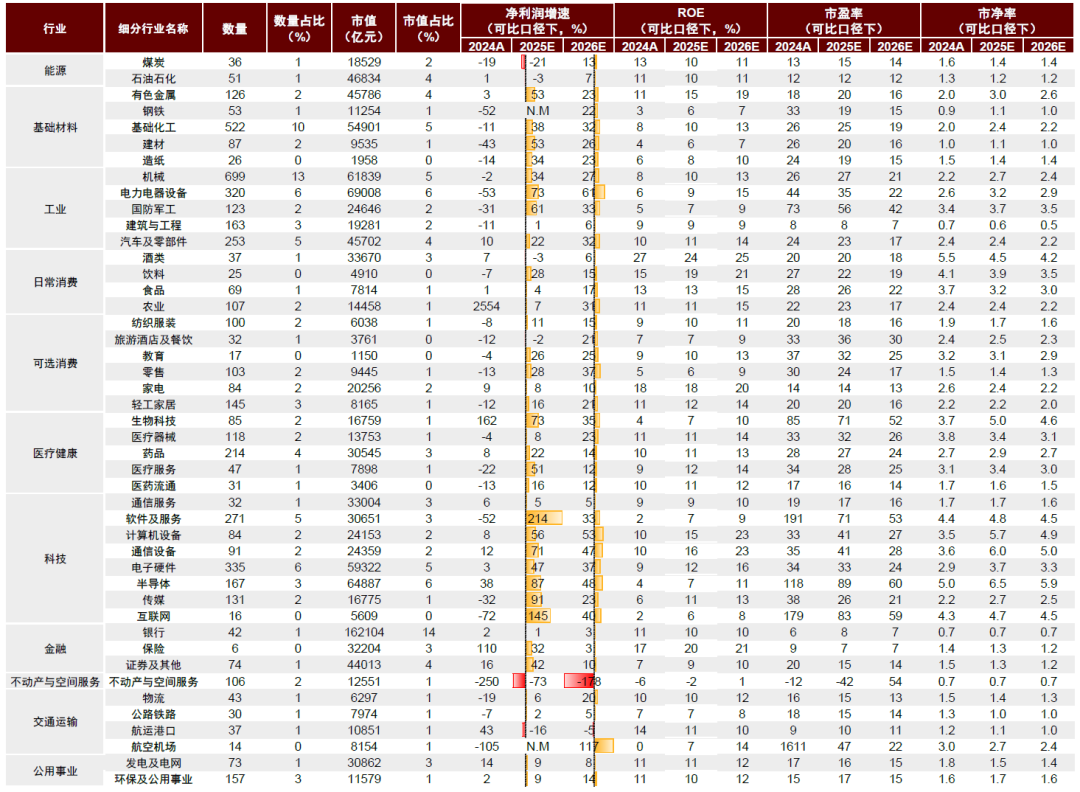 图表2:A股各板块基本面情况