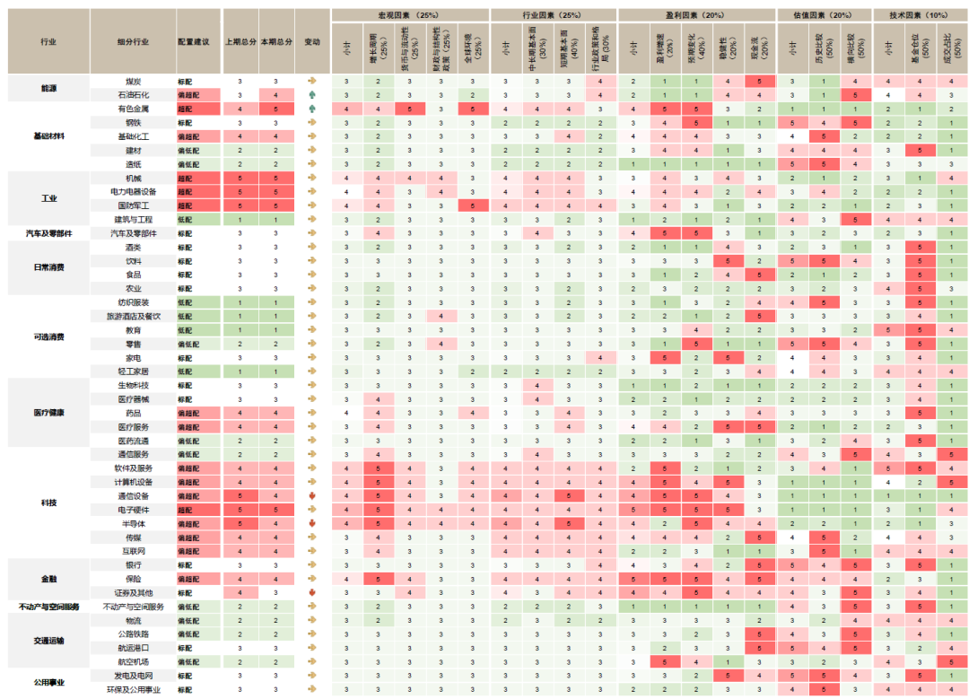 图表1:中金A股行业配置观点及细分小项