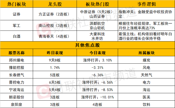 证券板块大爆发,日内龙方正证券2连板,高度股中原证券走出5天2板。证券板块爆发的逻辑或有:1)指数冲关新高的预期;2)金融受益中欧投资协定。证券板块尾盘继续加强,涨停家数增加到了7家,明显形成了板块效应,那么方正证券和中原证券的地位一下子拔高了,中原证券的地位或类比今年7月份光大证券,方正证券的地位或类比今年7月的浙商证券。