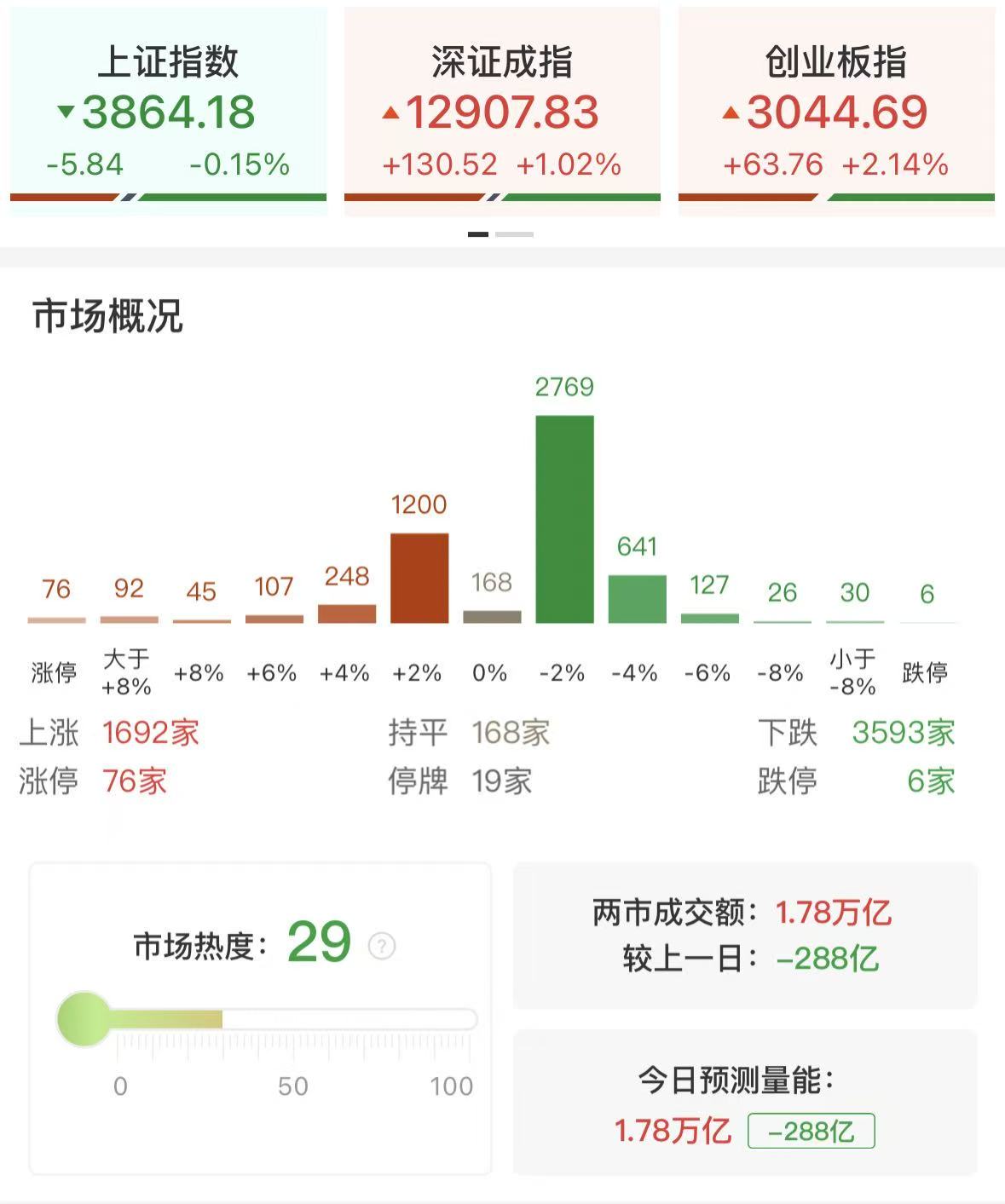 今日市场震荡分化,三大指数涨跌不一,其中创业板指表现较强涨超2%,重新站上5日线的同时,也已成功回补上周五跳空下跌所留的缺口,短线或仍具进一步冲高之可能。但需注意的是,今日市场整体量能不增反减,并且创业板指此前下跌的过程中累积了不小的套牢盘。若后市量能无法持续性放大的话,短时间内想要完全化解或存难度,一旦出现遇压滞涨的情形,则需留意二次回踩的风险。另外需注意的是,虽然以算力硬件为代表的科技股方向再度走强,但下跌个股数量较之前两日明显增多,市场整体的赚钱效应也有所下降。预计在存量博弈环境下,市场仍以结构性分化为主,把握几大热门板块的轮动机会或是关键。