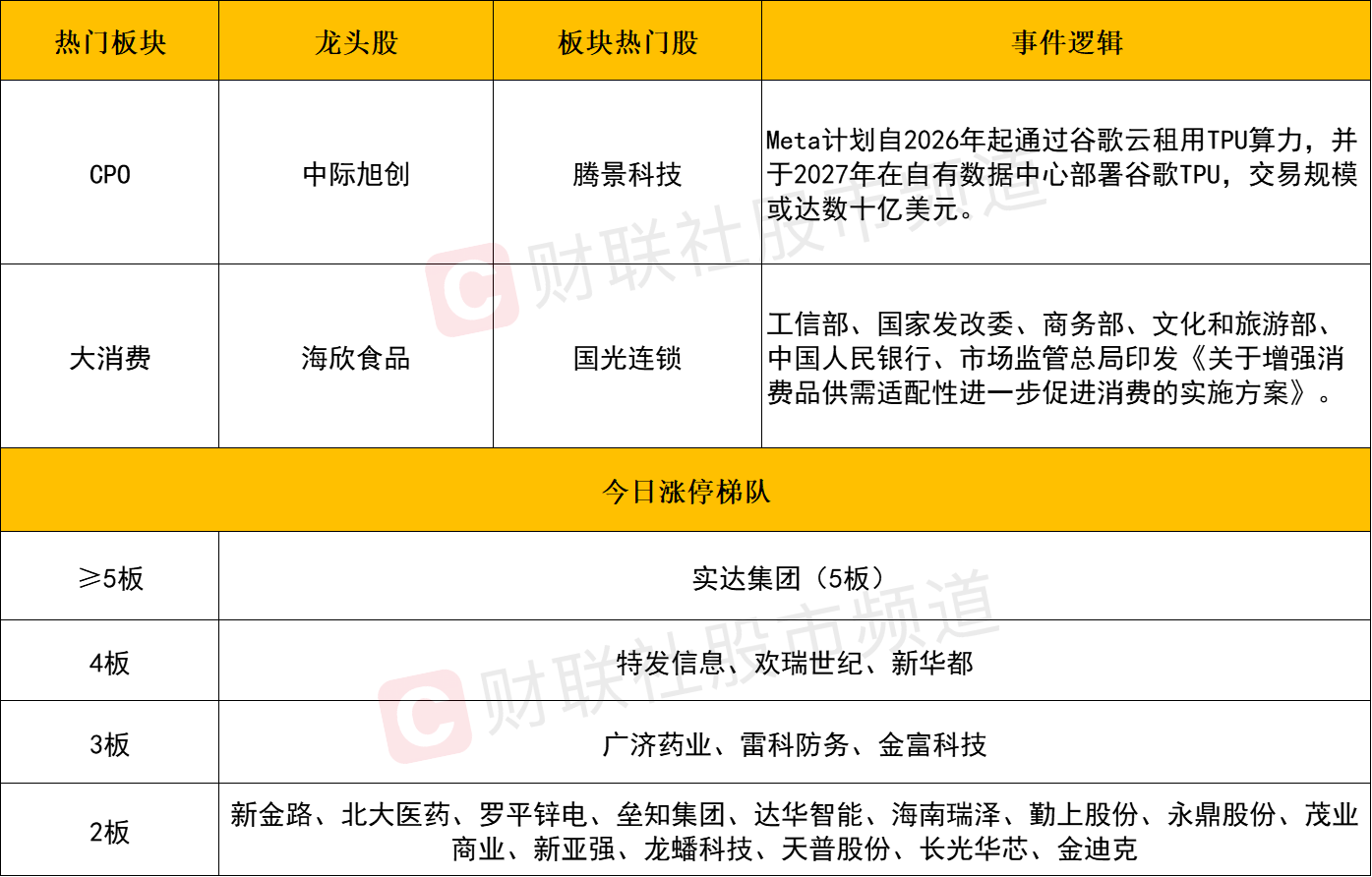 消息面上,工信部、国家发改委、商务部、文化和旅游部、中国人民银行、市场监管总局印发《关于增强消费品供需适配性进一步促进消费的实施方案》。上述政策聚焦消费品供需适配,为零售、食品饮料等领域注入信心。此外,从市场角度来看,消费股自身位阶优势依旧较为突出,叠加消费基本面逐步修复、区域政策红利释放,短期有望延续热度,后续需关注政策落地力度及消费数据改善情况。
