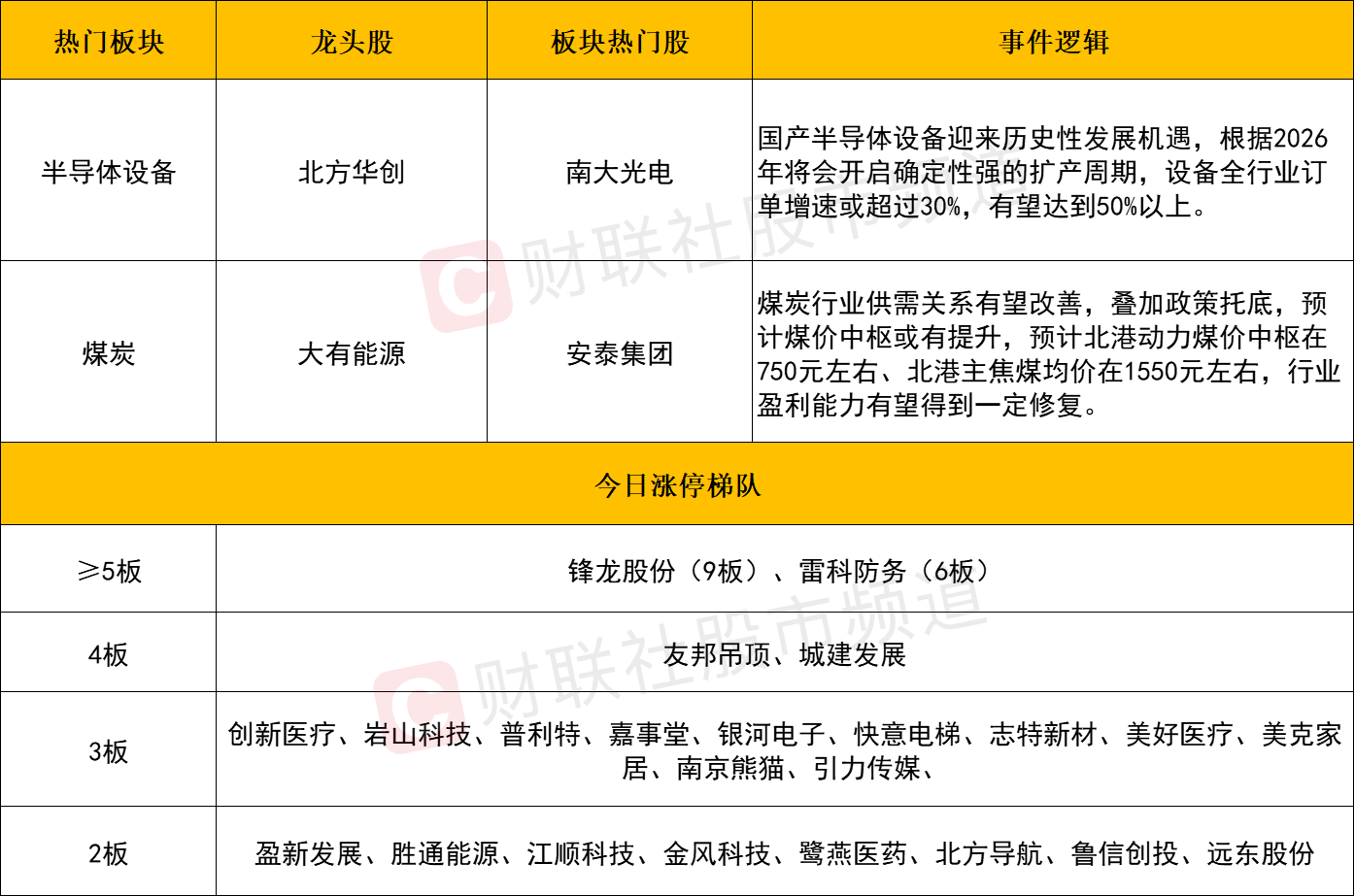 半导体设备全线爆发,北方华创、中微公司、拓荆科技、长川科技等均创下历史新高。光刻机概念同样涨幅居前,南大光电、安达智能、彤程新材、则成电子、国风新材涨停,安集科技、先锋精科、鼎龙股份等个股涨幅居前。