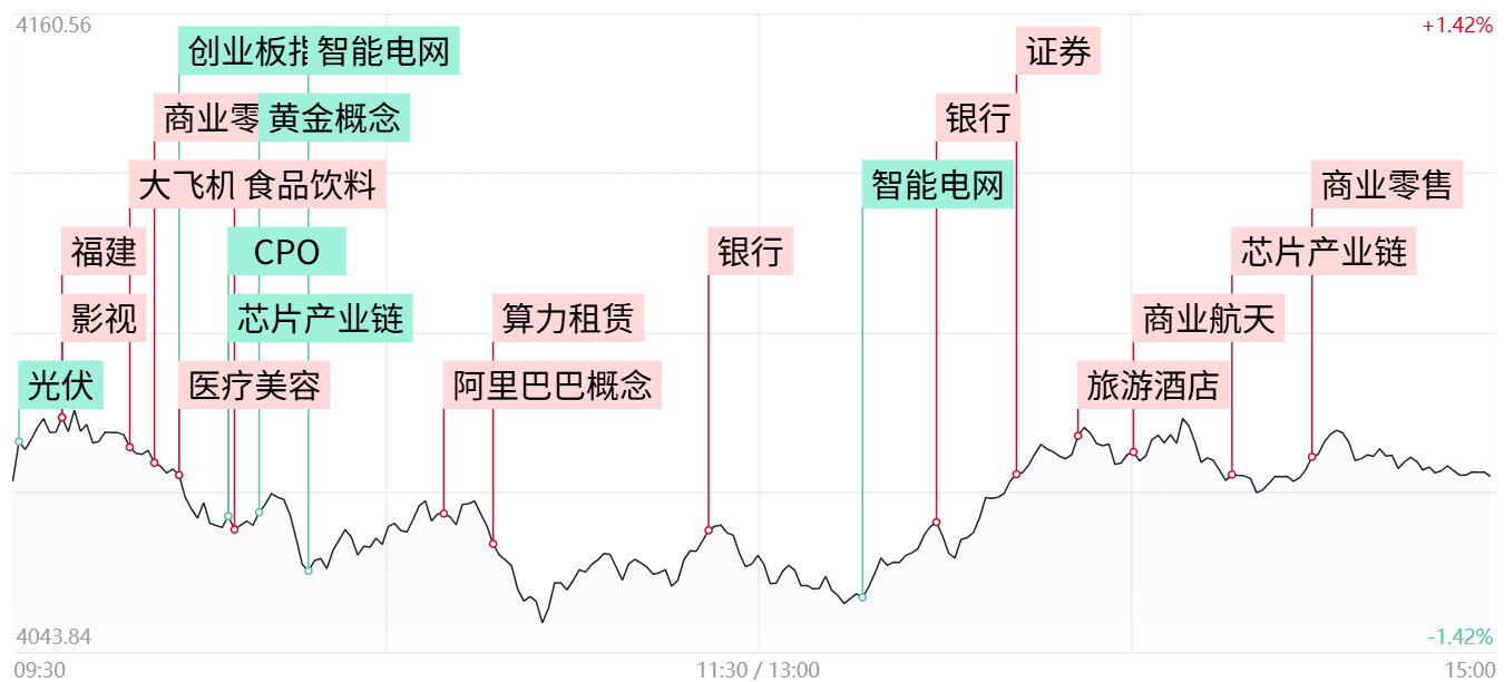 个股层面来看,今日市场热点延续快速轮动,昨日最为火爆的太空光伏概念跌幅居前,钧达股份、金辰股份、双良节能跌停,捷佳伟创、迈为股份、晶盛机电、海优新材等个股跌超9%。而电网设备方向同样陷入调整,金盘科技跌超10%,中国西电、特变电工、三变科技、伊戈尔等跌超5%。另一方面,大消费则逆势爆发,横店影视6天5板,皇台酒业6天4板,茂业商业5天3板,新华百货6天3板。而作为龙头的贵州茅台持续走高,近6个交易日涨超17%。而科技股方向,昨日领跌的算力租赁概念局部反弹,群兴玩具4天2板,二六三涨停,网宿科技、利通电子、浙文互联同样获得资金回流。总体而言,在存量博弈的环境下热点的延续性均相对一般,故相较于盘中的热点跟随,在回调整理过程中寻找低吸机会或具更高胜率。